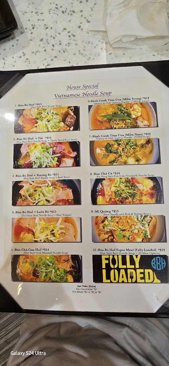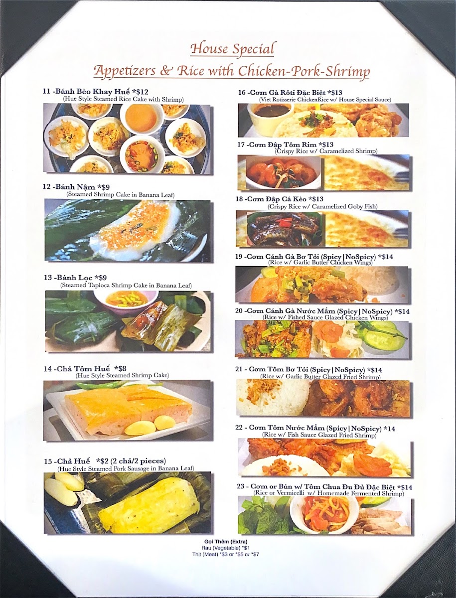 The menu is organized to accommodate casual dining and quick orders, making it suitable for lunch or light meals. Customers can expect a selection of appetizers, main courses centered on authentic Vietnamese flavors, and complementary drinks. This structure allows visitors to experience a variety of textures and tastes characteristic of Central Vietnamese cuisine.